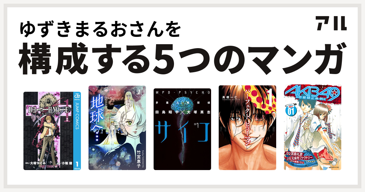 ゆずきまるおさんを構成するマンガはdeath Note 地球へ カラーイラスト完全版デジタルエディション 多重人格探偵サイコ パーフェクト ヒューマン Akb49 恋愛禁止条例 私を構成する5つのマンガ アル